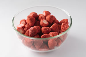 当社で製造したフリーズドライ食材を、ケーキやカクテルの原料としてご利用いただいています。ホテルのウェルカムフルーツにもお使いいただいており、油を使用していないことや見た目の華やかさなどで、外国の方にもご好評をいただいています。