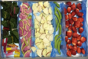 ご要望の食材で、フリーズドライ製品を作ることができます。色、香り、味の良さを追求した高品質の試作を、少量から対応。食材はすべてハンドカットで切り取るので、傷やサイズなどで規格外となったものも無駄なく使うことができます。生産者の方とのコラボレーションも行っています。